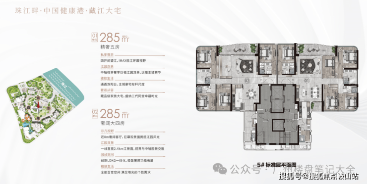 户型:建面约233-285㎡四至五房,约255㎡东南向一线阅江新品加推。极致3.4-3.6m层高,14-40层高层、超高层