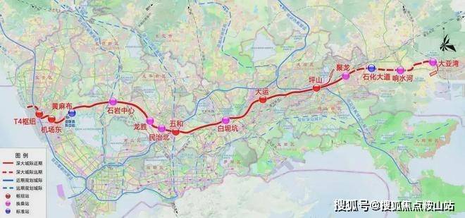 另外项目旁还规划有深大城际“龙胜站”,3站即可到达宝安机场东,该线路全线长约69.2公里,目前仅深圳段动工,是由宝安T4开往惠州大亚湾,途径宝安区,龙华区,龙岗区,终止坪山聚龙站,总设站11座,设计时速160公里,预计在2026年开通运营。