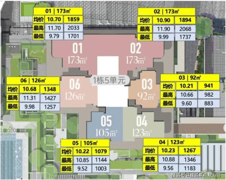 新规产品,户型得房率约90%,1栋5单元6个主要户型。