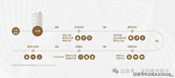 项目交通优势主要体现在三个方面:一是无缝连接地铁10号线,下楼即站;二是1站直达五和枢纽,实现多线换乘;三是通过深大城际可快速连接宝安机场(20分钟)等重要节点。此外,项目周边公交线路丰富,如313、317、612、M263等,覆盖多个方向。未来随着地铁22号线、25号线的规划实施,项目交通价值将进一步提升。五和站出入口设计合理,包括A、B、C、D四个出入口,分别连接不同方向的商业和居住区,满足多样化出行需求。