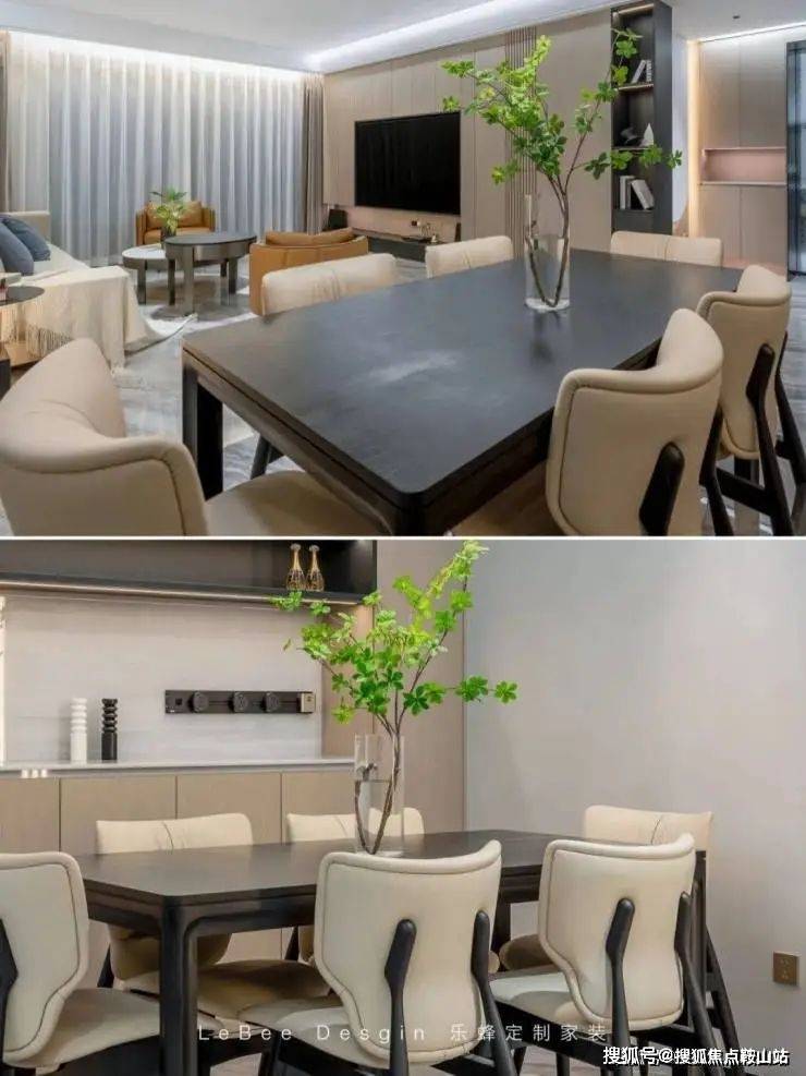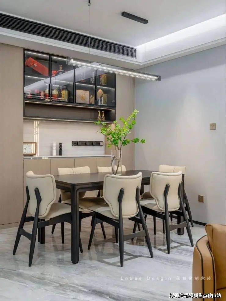 方圆黑色餐桌搭配米白色皮质小餐椅,营造出一个既时尚又典雅的用餐环境,每一处细节都诠释着意式轻奢风的独特魅力。