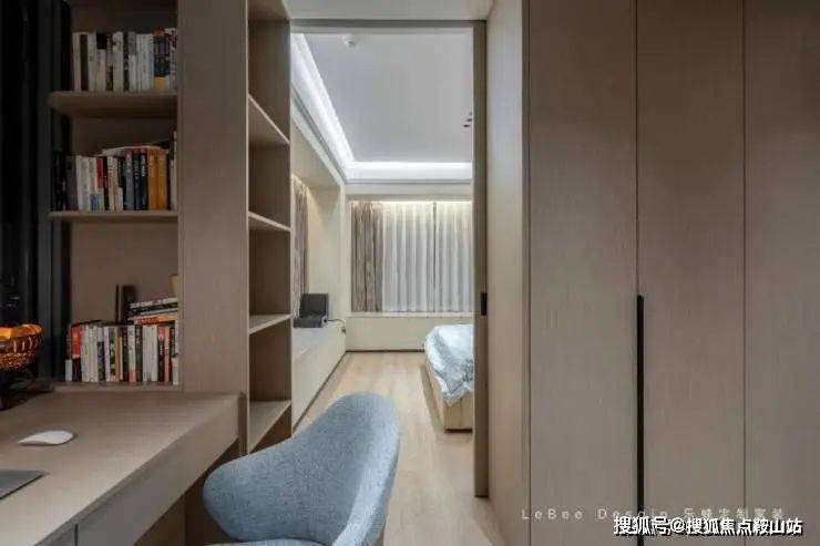 ②长辈房的房门设计成隐形门,跟整个客厅的电视背景融合一体。