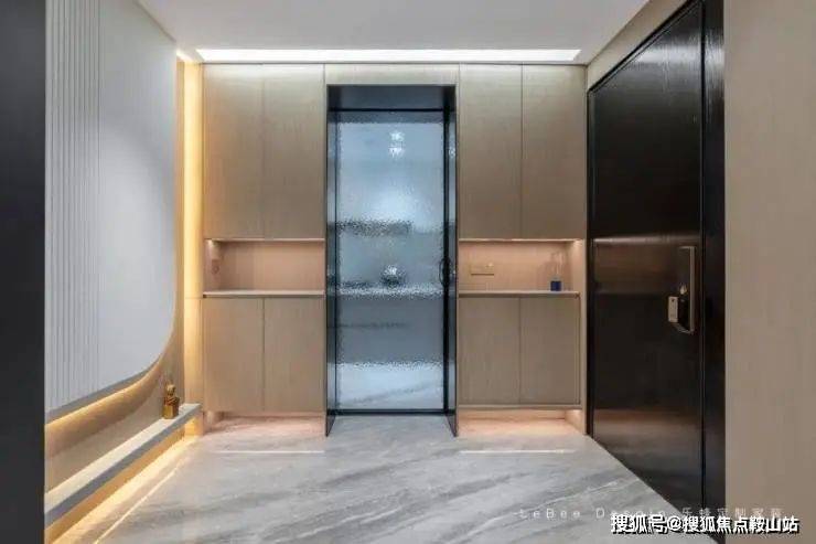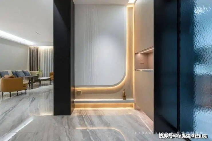 内嵌的灯带不仅展示了设计的巧思,也给玄关赋予了温暖而柔和的光线,更好的展现了家的温馨感。