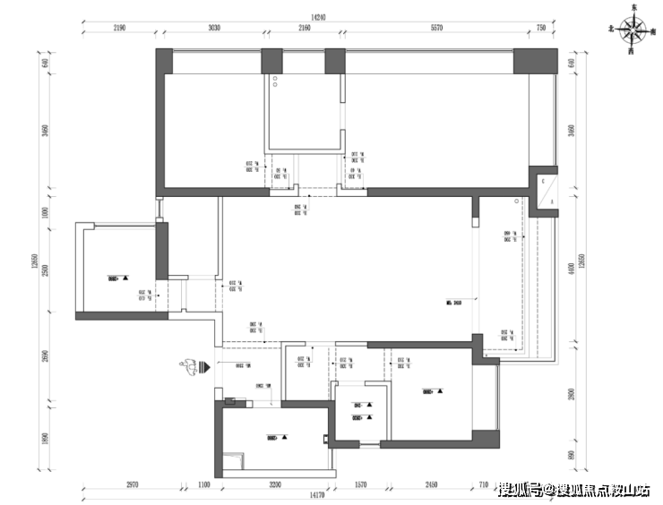 ①进门处原始结构暗、窄、拥挤,把进门处的墙面往后移,做了一个玄关背景。