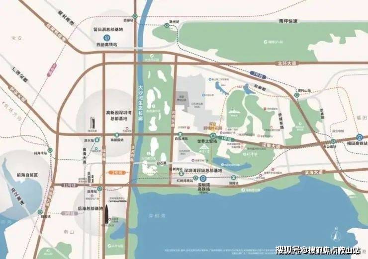 南瞰世界之窗,北眺华侨城,东临华侨城欢乐谷,西望大沙河生态长廊。
