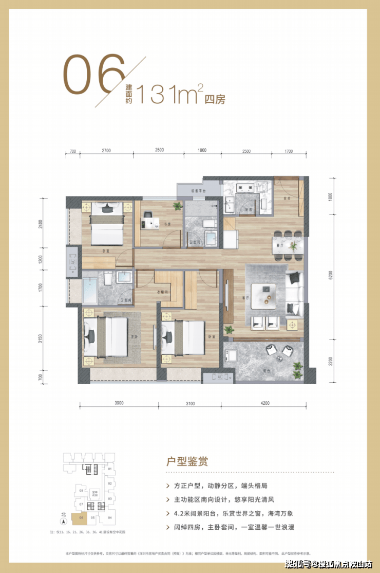 三开间朝南,户型很方正,超11米超大面宽;4个房间都敞亮,舒适感拉满;南向看世界之窗和深圳湾,西边是高尔夫,景观面也没的说;而且这个户型所在的楼栋和位置也是很理想的。