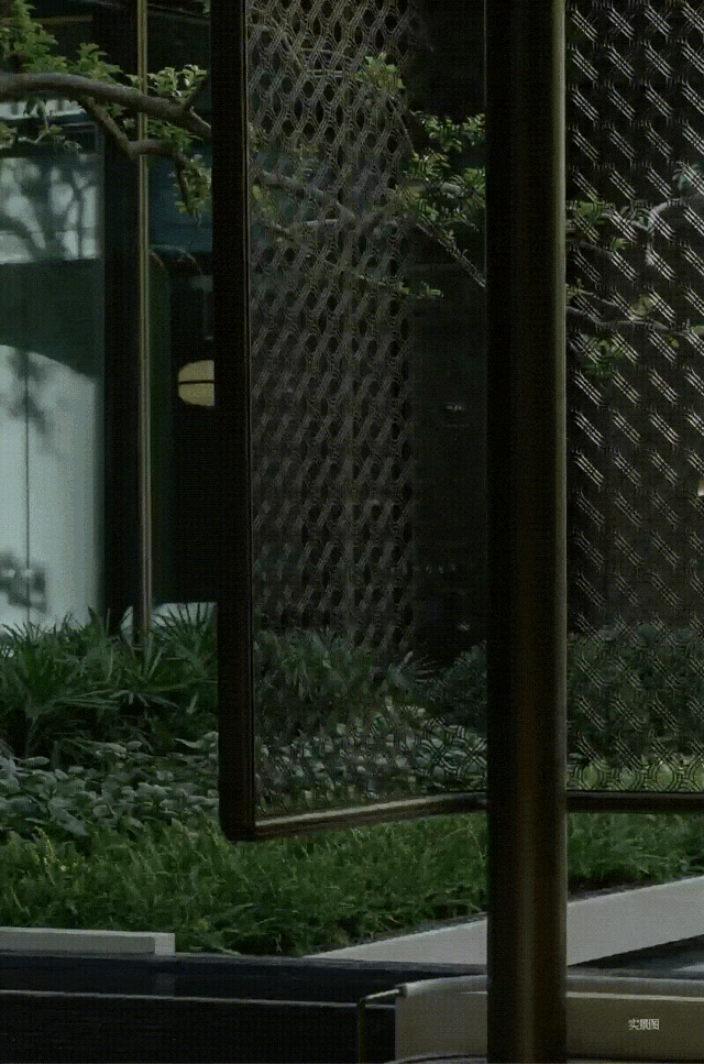 踏入社区,方胜纹金属格栅如鎏金织锦描摹景墙界面,蜿蜒连结成同心之链,暗喻“同舟共济”的东方情谊。玉石镶嵌的天珺标识辉映其间,为归家之路烙下第一重尊荣印记。
