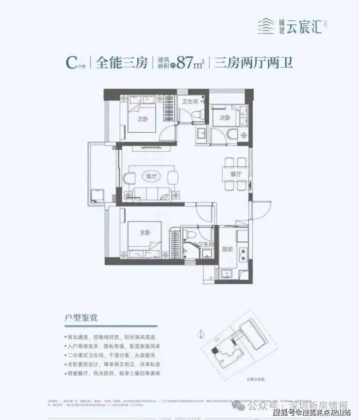 城建云宸汇位于深圳市龙岗区坂田街道坂澜大道和环城路交汇处,由深圳市城建集团开发建设,是集住宅、商业、办公和宿舍为一体的综合体项目,推售140套住宅房源,面积65-113㎡的2-4房。