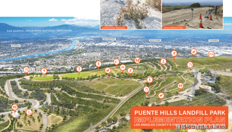其中,Studio-MLA设计“普恩特山垃圾填埋场公园实施计划”(Puente Hills Landfill Park Implementation Plan)获得ASLA/IFLA全球影响力大奖。该奖项表彰其通过解决气候影响的设计,形成了可扩展的解决方案,促进废弃垃圾填埋场演变成一个充满韧性的生态公园。