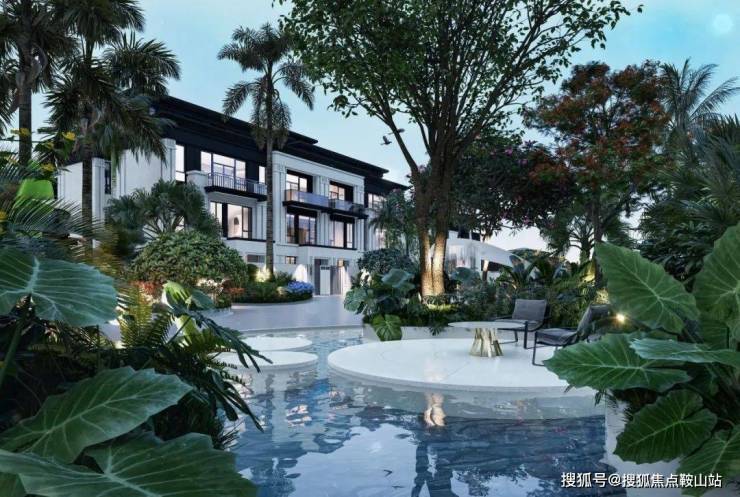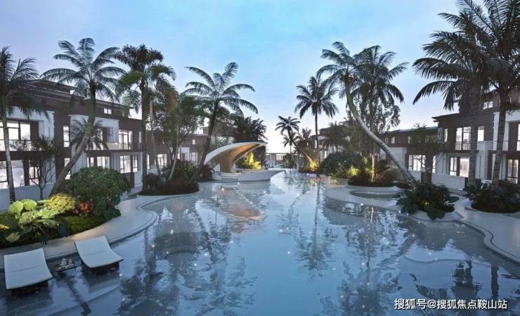 泳池线条流畅,柔美,椰树、棕榈就势环绕。椰树取自然形态与水共生,“虽有人作,宛若天成”,风吹林间,椰林与水波一齐摇曳,是热带岛屿该有的样子,岸边设置与更衣沐浴立体结合的游艇休憩厅,“游艇”于林间驶出,三五朋友谈天说地赏星光,是在这里生活的主人们该得的品质。
