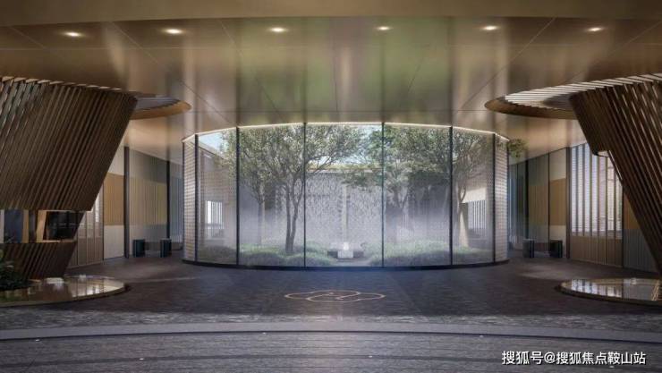 这片景致取自宋代赵伯驹《春山图》,在项目LOGO定制金属格栅的虚隔下若隐若现,显而不露,尽显底蕴。