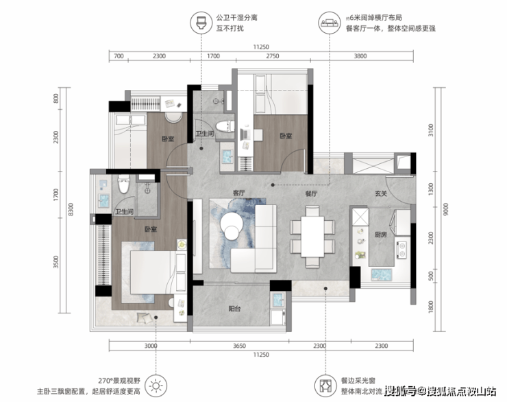 约6m客餐厅,主卧三飘窗+270°无敌景观,送10个飘窗