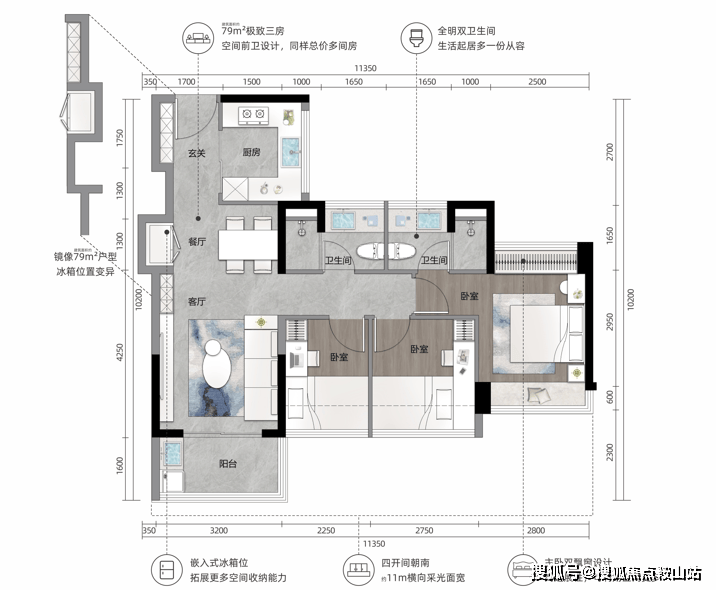79m²三房顶配双明卫生间,四面宽朝南约11m采光面,送7个飘窗🐎东莞松湖喜悦里【售楼处电话】✅ 400-856-3771⭕(已认证)🎥❄️❇❇