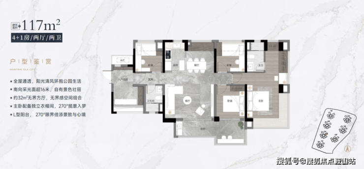 【117-120㎡四+一房二卫户型鉴赏】:百变五房,全配套改善之王