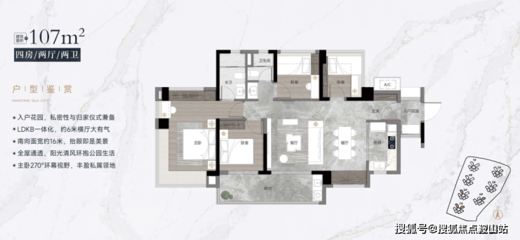 【107-108㎡四房二卫户型鉴赏】:400万内板块唯一四房