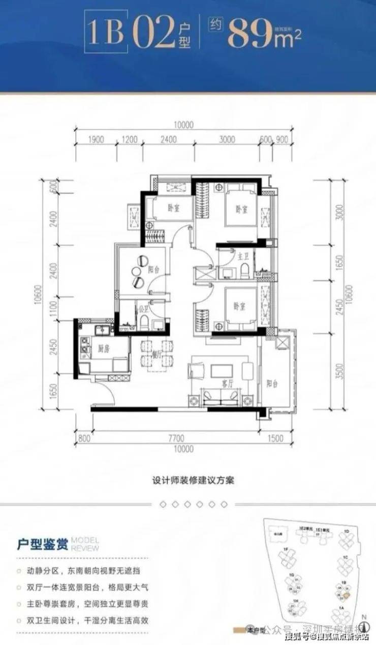 1B-02户型:约89㎡ 四房两厅两卫: