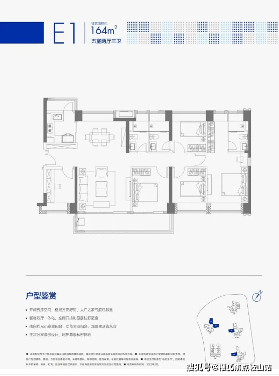 【泓园E1户型】约164㎡五房两厅三卫
