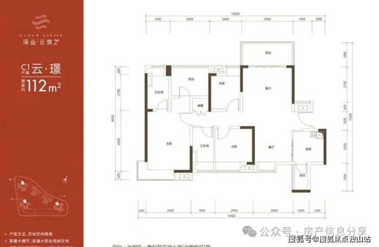 112㎡的4房2厅2卫,折后总价336万-386万/套,单价3-3.44万/㎡。
