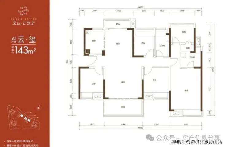 143㎡的4房2厅2卫,折后总价488万-528万/套,单价3.41-369万/㎡。