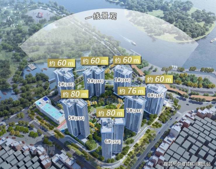 保利首铸鹭湾项目呈扇贝形状点式布局,项目整体地势抬高,且楼栋由东向西逐级抬高,确保更多的单位能看江。
