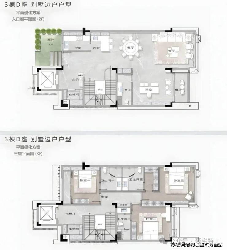 •奢阔梯户:单层私享8梯3户与双私家电梯入户,首层户户专用侯梯厅,隐私便捷;