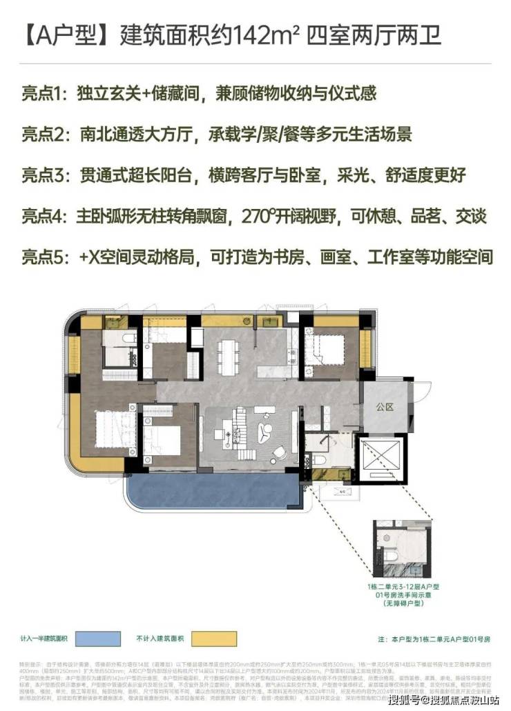 灵动空间格局,因更高的获得感而松弛• 四梯五户,独立电梯厅;• 户户均有南向视野,空间格局通透敞亮;• 270°弧形无柱大尺度飘窗、大宽厅、大阳台,带来更多使用空间。