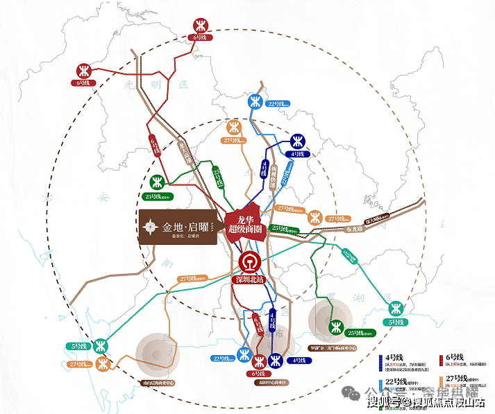 立体交通网络:周边汇聚4号线、6号线(已运营),以及规划中的22/25/27号线及深大城际,形成“六线七站”布局,便捷通达全城。