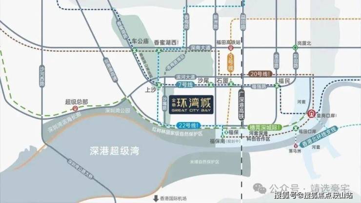双地铁线:7号线双地铁口(上沙站、沙尾站);22号线双地铁上沙站 (规划中,双线交汇),1站直达香蜜湖新金融中心与国家级河套深港创新合作区