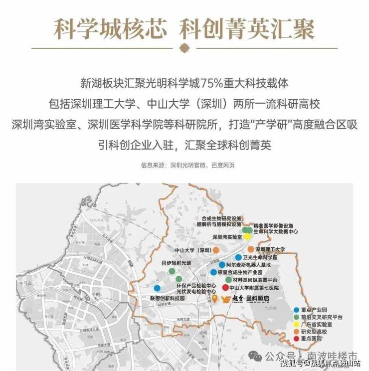 此地正是深圳重点打造的光明科学城,一个充满活力的科技创新引擎。区域内已集聚八大战略性新兴产业集群,包括生物医药和新材料,以及五大未来产业,如量子信息和脑科学,展现出强大的发展潜力。周边规划的科学岛、科技馆新馆、西方美术馆等科研文化设施,为这里增添了浓厚的学术氛围。同时,光明科学城还吸引了华为、比亚迪等知名企业的研发中心入驻,形成了“产学研”一体化的良好生态。