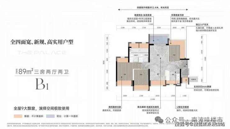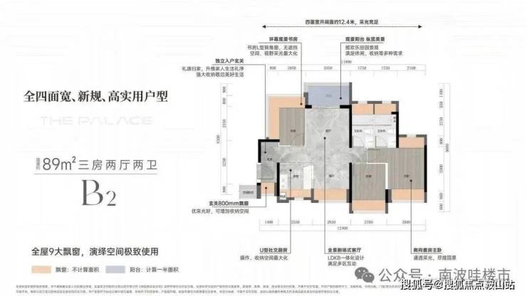 亮点1:客厅270度采光设计,客厅更是采用了当下最流行的设计风格「无主厅化」,而且客厅的凸窗进深达到了80CM。