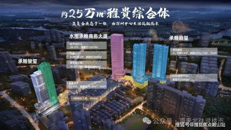 楼层分布:负1-3楼商业(2.5万平),4楼架空层空中花园,5-41层住宅(12/28楼避难层);