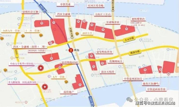 生活配套方面,项目周边规划和建设中的资源也很丰富。教育上,横沥岛规划了 3 所小学、3 所九年制学校和 1 所十二年制学校,其中 54 班九年制学校和 48 班小学预计 2026 年前投入使用。