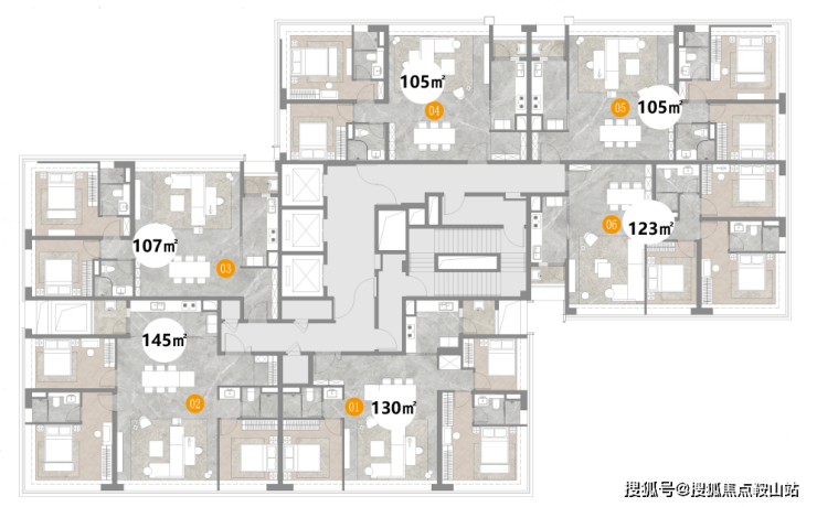 户型鉴赏(105㎡~145㎡/3梯6户)