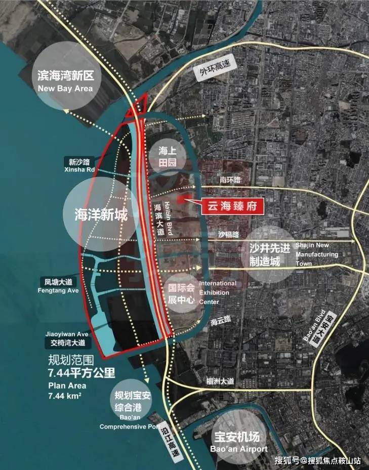 宝安沙井西北部,受深圳国际会展中心、海洋新城两大重要规划包夹。区域以东为沙井先进制造业集合区,向北跨越海上田园为东莞滨海湾新区。
