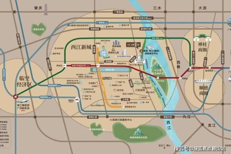 西江新城的战略价值正随政策红利加速兑现:珠三角枢纽机场2025年启用,广湛高铁横跨西江,"水陆空铁"立体网络让半小时直达港澳、一小时覆盖大湾区主要城市成为现实。随着肇庆九村并入高明的区划调整落地,西江新城GDP增速有望突破10%,239席别墅独占1公里江岸线,城央别墅正式进入"绝版时代"。