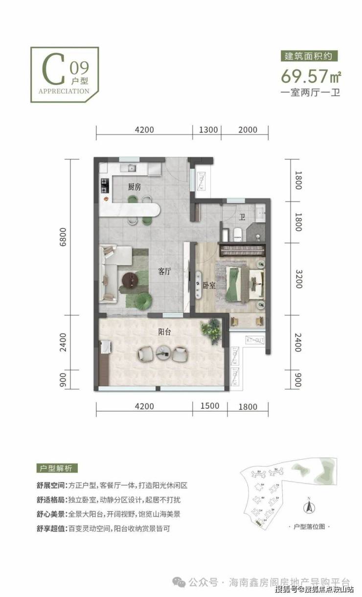 建筑面积约69㎡一房一厅