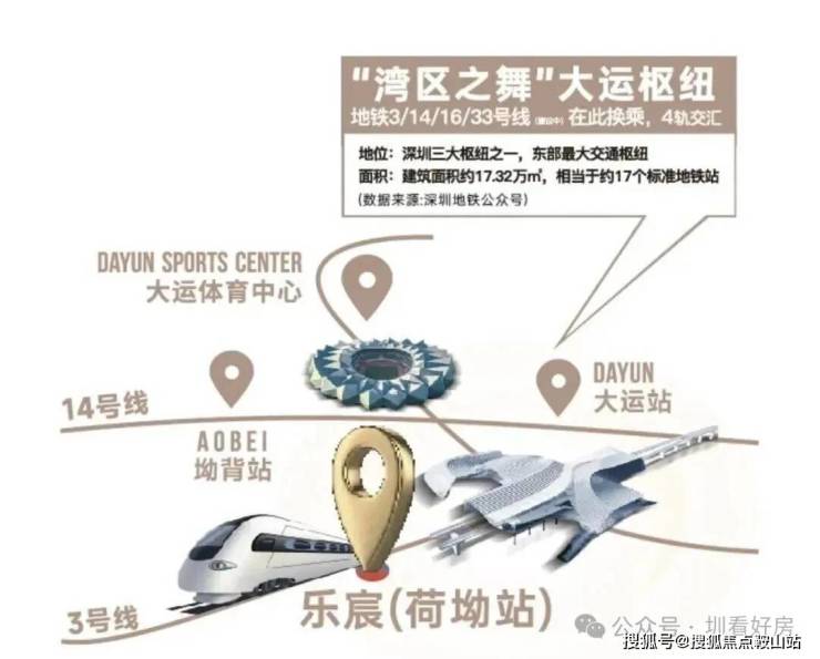 乐宸择址大运新城,以擎动东部的时代坐标之姿,立序湾东智芯。大运新城又定义为大运深港国际科教城,与前海、深圳湾、香蜜湖等区域并称深圳六大城市新客厅,汇聚东部最大综合交通枢纽。区域引进NBA中国赛、当红明星演唱会,深圳国际大学城落户,带动高能级配套激增,造就从容进阶的生活质感。