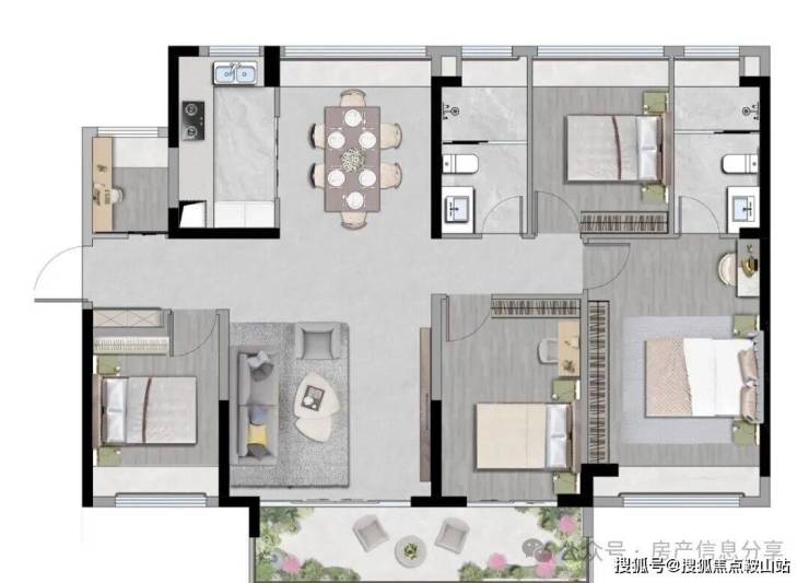 约6.5m南向宽景阳台,环幕视野 四季入怀餐客一体,无界融合 盛载多元生活想象全明通透,推窗即揽山境阳光清风流转百变户型,多元实用 二胎家庭成长空间