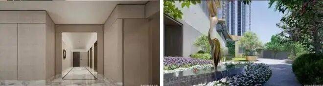 地下车库大堂:艺术灯光+石材肌理,酒店式尊贵感。