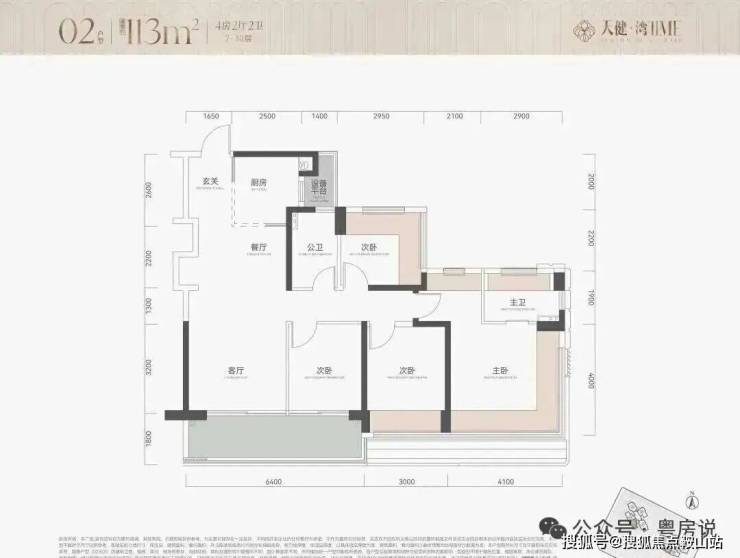 113㎡4房2卫,竖厅户型,朝南看海,6.4米宽大阳台;