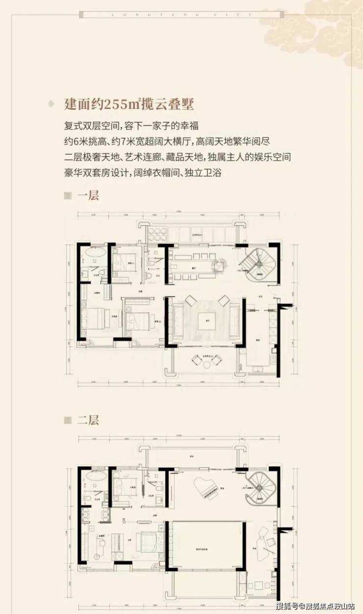 建面约440-837㎡国风院墅(总价约800万-2500万/套),建面约239-255㎡揽云叠墅(总价约500万-600万/套)