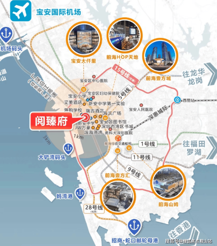 商业:约2公里覆盖前海壹方城(深圳最大商圈)、欢乐港湾、HOP天地,240+深圳首店品牌,满足高端消费需求。