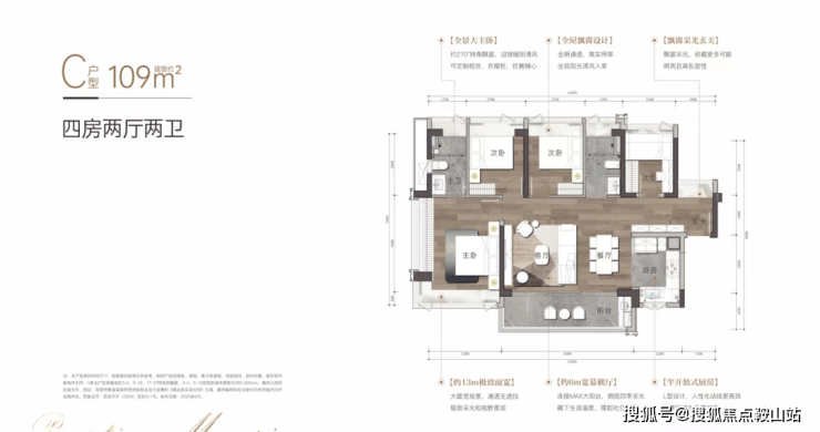 109㎡横厅四房(832万起):6米大横厅+南北通透,公卫三段式分离,空间利用率拉满。