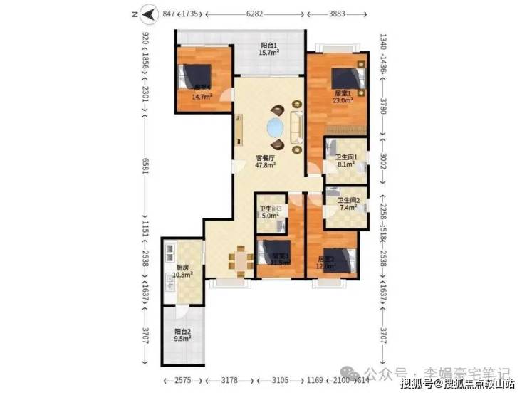 这个户型优质楼层成交价约4200-4500万,3栋B单元低楼层仅3200-3800万(价差显著)