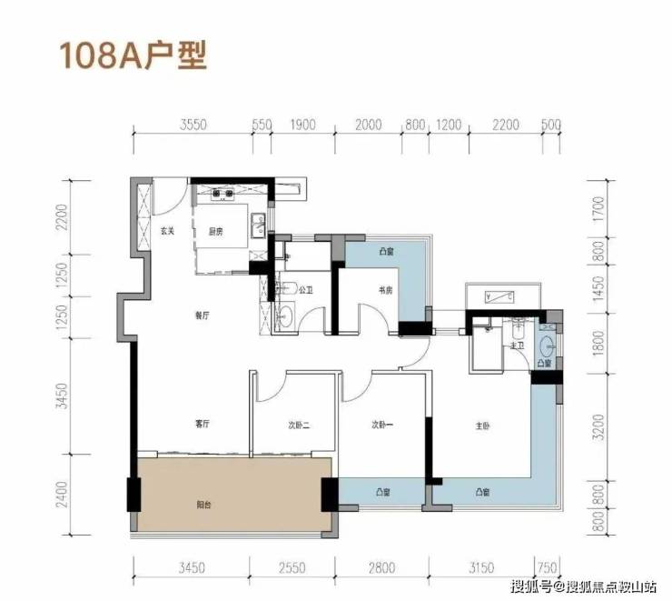 约108㎡竖厅东南侧户型总价约为392-415万。