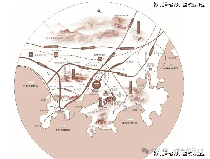 交通干线:紧邻三亚旅游主轴榆亚路,可快速通达大东海、亚龙湾、三亚湾、海棠湾四大湾区,实现三亚半小时旅居度假生活。