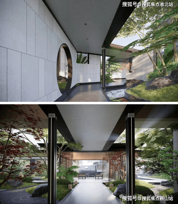 空间布局:一进山水院以叠石奇景、精巧花木为主,营造如居山中的归家体验;二进镜水院以水景、曲桥、角亭为主,展现中式生活特色园林空间。此外,项目园林还以环绕式连廊、点景亭台、曲桥竹径,将山水园境串联,一步一景。