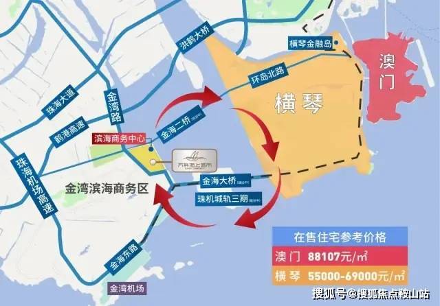 一站机场、双轨、三桥连横琴(1)公交:背靠公交始末站,2元游遍全珠海。(2)通勤:两条轨道10分钟抵达横琴金融岛、三条跨海大桥直接连接横琴东、西两片区。从这里出发,比住在横琴岛上还方便。(3)出游:15分钟到达国际机场,畅达国内外。