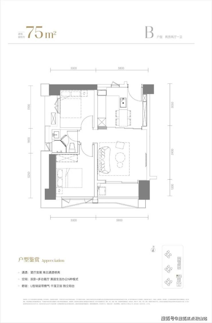 公寓统一特点:民水民电、有燃气、70年产权、户户带阳台、精装交付。梯户比南段三梯四户,中段和北段三梯八户。
