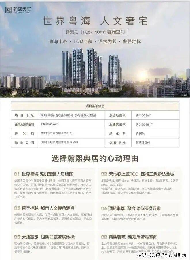 深湾CBD丨时代粤海的蝶变新章深湾CBD立足南山区“双核”战略核心,串联科技园、后海、深超总、深圳中央公园,聚合金融、科技、人文生态超级闭环,以多维战略产业叠加,重塑粤海价值天际线。翰熙典居,是继华润城之后深湾CBD又一人居地标之作,以时代中心之上的奢居基因,铸就跨越周期的矜贵人居恒产。